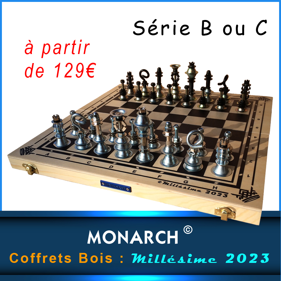 Un coffret en bois avec plus de place à l’intérieur, pour un rangement des pièces facilité. Une finition impeccable avec son vernis intérieur/extérieur, rehaussé de ses deux plaques d’aluminium, pour un échiquier flamboyant en parfaite osmose avec les pièces Meca-MONARCH© .