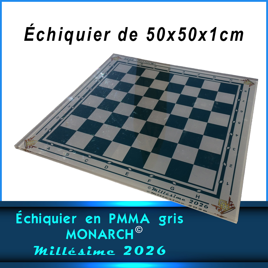 Jeu d’échecs complet avec échiquier en PMMA Gris + Pièces du Millésime 2026 en kit