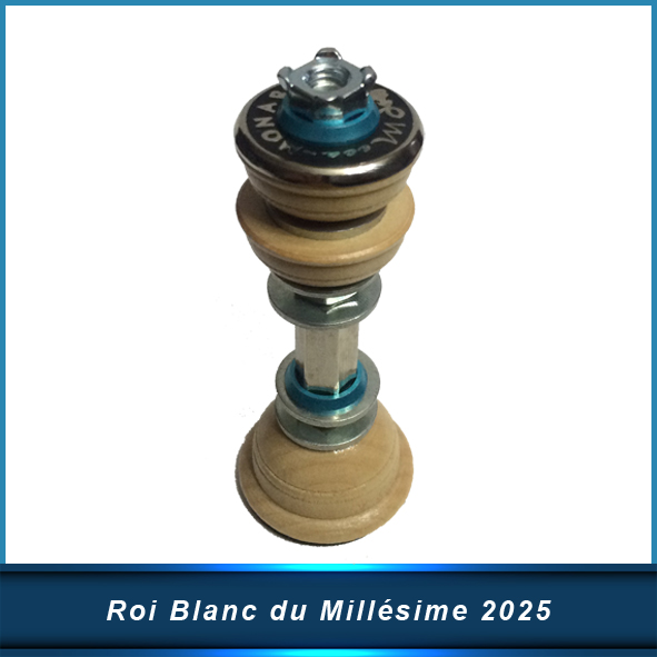 Avec sa base de 32mm et sa hauteur de 85mm, ce Roi Bi-Matières (bois + acier, mais en vérité Tri-Matières, puisque l’écusson émaillé est en alliage de zinc) constitué de 16 éléments, s’accordera parfaitement avec tout échiquier de taille 4 ou 5, quelle que soit sa couleur ou sa matière. Livré avec son coussinet de protection autocollant.